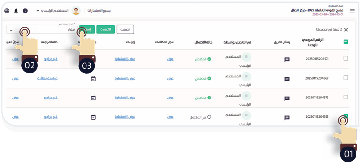 - حدد الوحدة التي تريد إسنادها من جدول المهام، بالضغط على مربع التحديد بجوار الوحدات المطلوبة.