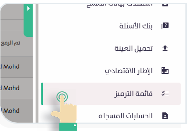 هي نافذة مخصصة للأسئلة التي سيتم ترميزها كما هو محدد في صفحة البناء، والتي تهتم بكيفية إنشاء الرموز وتحريرها. ويمكنك إضافة قائمة ترميز، باتباع الخطوات التالية: