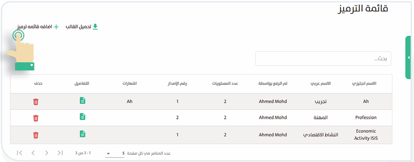 ؛ لإتمام إضافة قائمة الترميز، لتظهر في جدول قائمة الترميز كما في الصورة التالية: