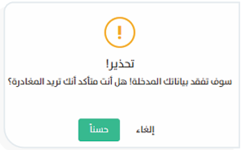 تظهر الرسالة عند محاولة إغلاق تبويب “إضافة مستخدم” دون حفظ البيانات المدخلة.