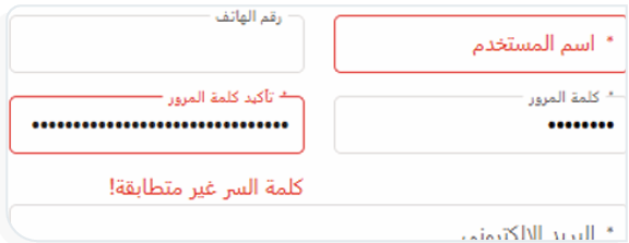 تظهر الرسالة إذا أدخلت كلمة مرور في صندوق “تأكيد كلمة المرور” غير مطابقة للكلمة التي أدخلتها في صندوق “كلمة المرور” عند إضافة مستخدم جديد.