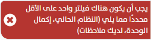 رسالة “يجب أن يكون هناك فلتر واحد على الأقل محدداً مما يلي (النظام الحالي، إكمال الوحدة، لديك ملاحظات)”. #