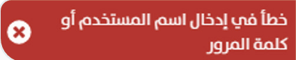 تظهر الرسالة عند إدخال اسم مستخدم أو كلمة مرور خاطئة عند تسجيل دخولك إلى النظام.