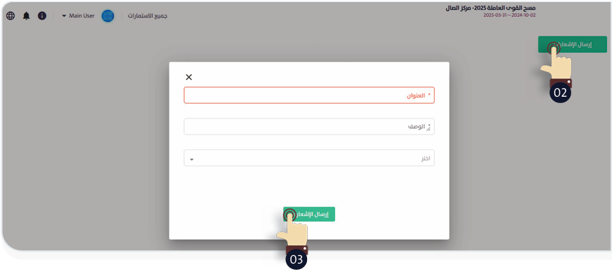 . - أدخل العنوان والوصف، وحدد المستخدم، ثم اضغط “إرسال”.