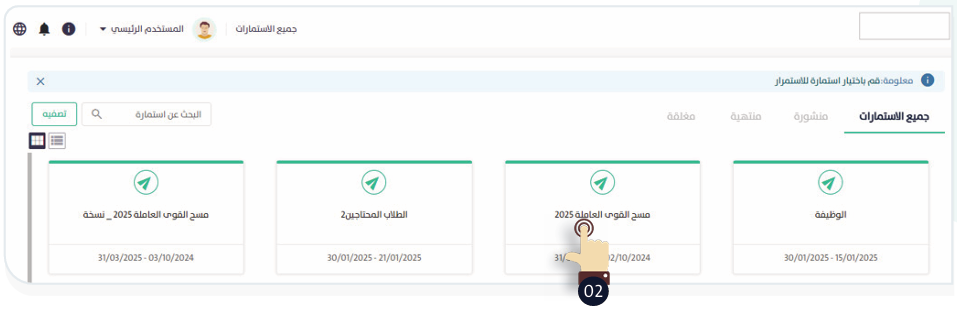 - يمكنك الانتقال إلى صفحة مهامك الخاصة واختيار استبيان محدد.