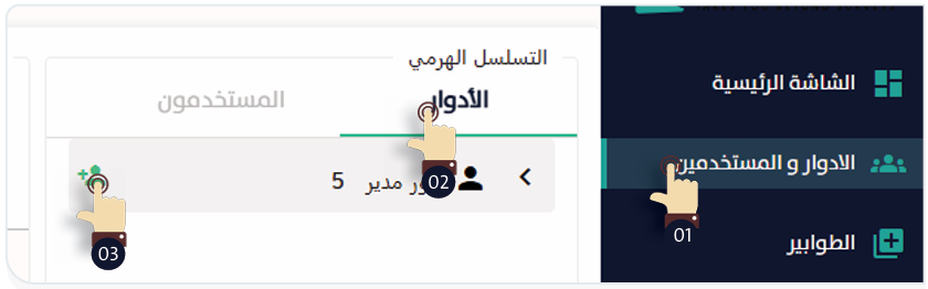 - اضغط “الأدوار” من قسم التسلسل الهرمي.