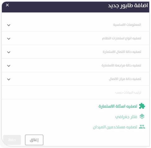 ، لتنبثق لك نافذة تشمل الخيارات والمحددات التي تستطيع من خلالها إضافة الطابور.