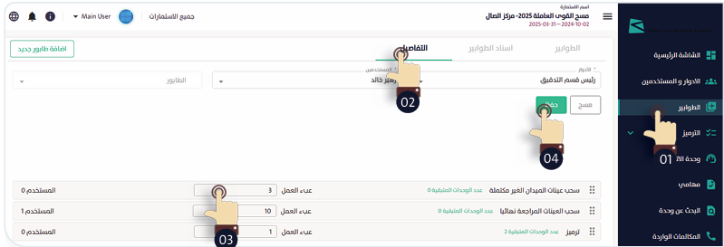 - اختر “الطوابير” من قائمة التحكم الجانبية، ثم اتبع الخطوات حسب الشاشة التالية: