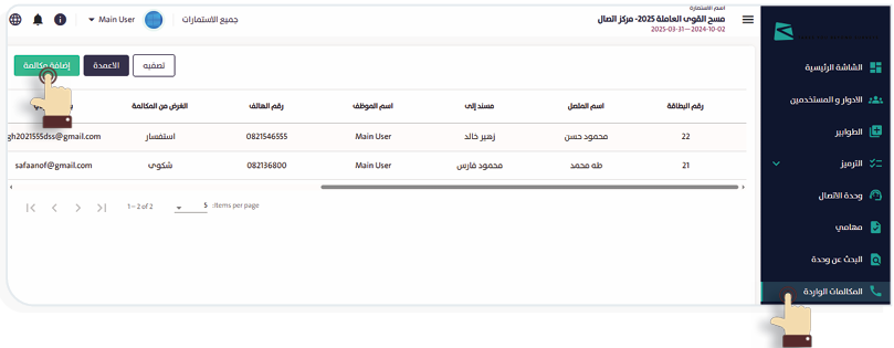 من قائمة التحكم الجانبية. - اضغط “إضافة مكالمة”، واملأ بياناتها،
