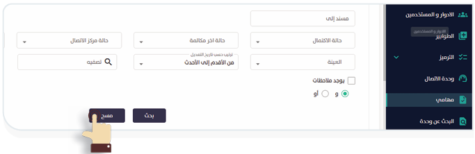 ؛ لمسح خيارات التصفية والعودة لعرض كافة المهام المُسندة.