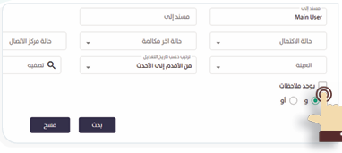 ، للبحث عن الوحدات التي سُجلت عليها ملاحظات فقط.