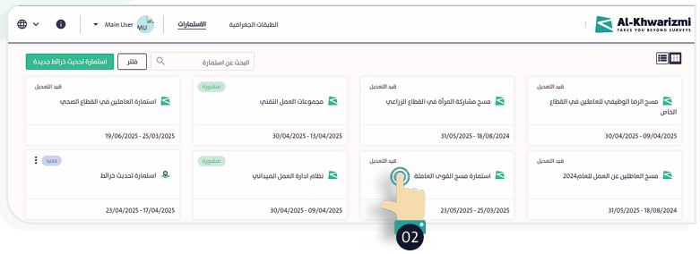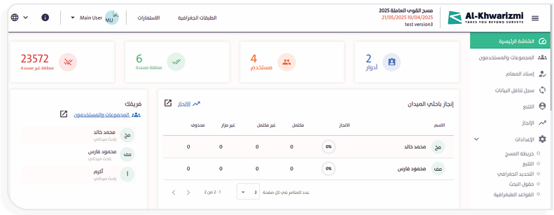 - أسماء الباحثين: يعرض أسماء الباحثين في الميدان المشتركين في الاستمارة.