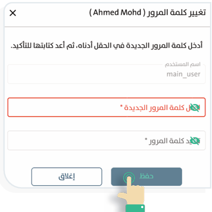 - اكتب كلمة المرور في حقل «إدخال كلمة مرور جديدة» ثم كررها في حقل «تأكيد كلمة المرور»، ثم اضغط «حفظ».