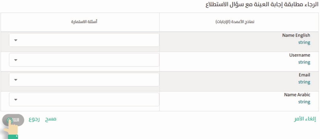 طابق بين أسئلة المسح ونماذج الإجابات في ملف الإكسل الذي قمت بتحميله في الخطوة السابقة، ثم اضغط على “التالية”