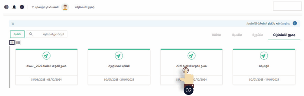 لمعاينة الاستمارات المتاحة للمستخدم اتبع الخطوات التالية: