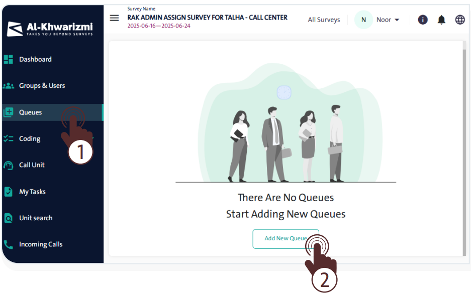 - From the side control menu, select “Queues”.
