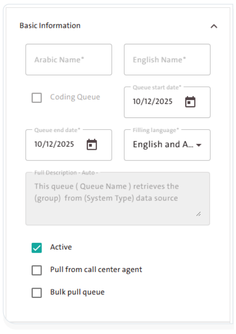 - Queue End Date: once this date is reached, the queue will be automatically disabled.
