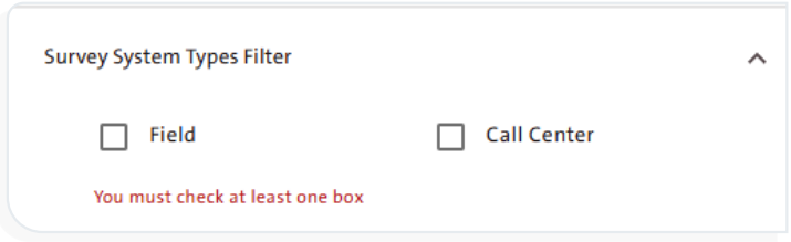 - Select the “Field” option from the “Survey System Types Filter” tab.