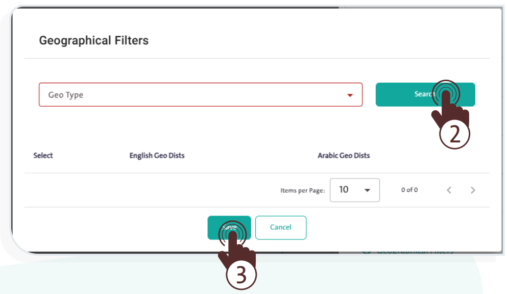 - Choose “Geographic Filter” A window will pop up; select the geographic type, then click “Search”