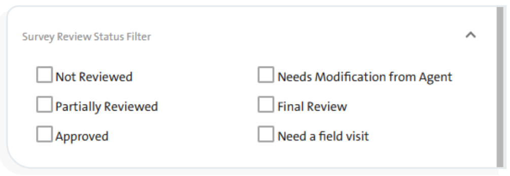 You can filter the forms you want to include in the queue based on their review status from the Call Center. You can select from the following statuses: