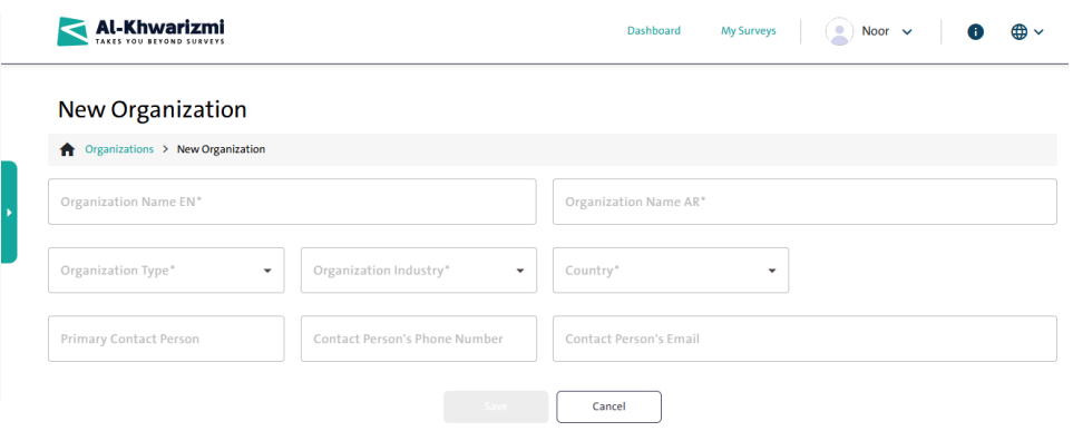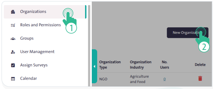 next to the contact’s name. - To search for an organization, use the search box; the results will appear on the table below the search box.
