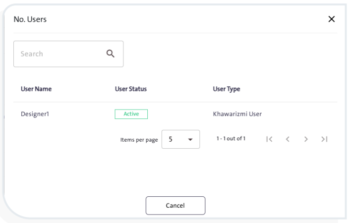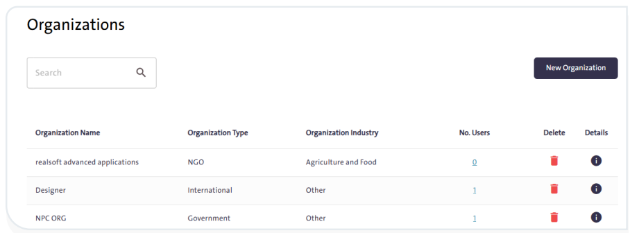- To view the individuals associated with a specific organization, click “No. Users”. A table will pop up displaying the following data: