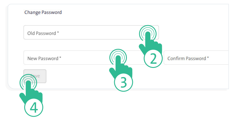 - Select “Change Password” to display the following fields: