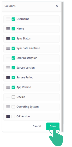 to display a side panel containing all available columns. - Select the columns you want to display in the table.