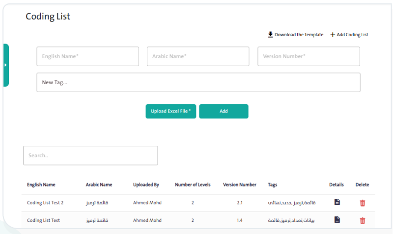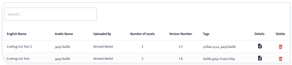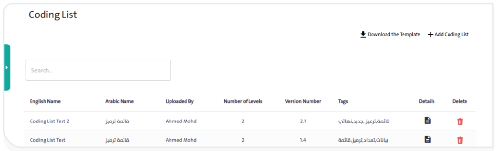 to complete adding the coding list. It will then appear in the coding list table, as shown in the following image: