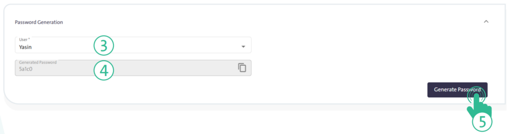 • Click the “ Password Generation” tab, then select the user.