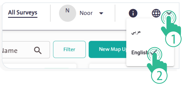 • Click the “Languages” icon at the top of the screen. A dropdown menu will appear with two options, as shown in the following figure: